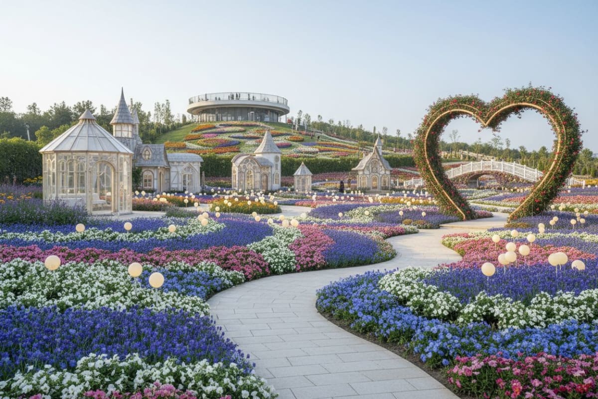 따스한 햇살 아래 수천 송이의 꽃들이 바람에 살랑이는 모습은 그 자체로 한 폭의 그림이 되며, 어떤 각도에서 찍어도 감탄을 자아내는 배경이 되어줍니다. 빨간색, 노란색, 보라색 등 다채로운 꽃들 사이에서 포즈를 취해보세요. 꽃잎 하나하나가 마치 살아있는 예술 작품처럼 여러분의 사진을 더욱 풍성하고 생동감 넘치게 만들어 줄 것입니다. 싱그러운 꽃향기와 함께하는 촬영은 오감을 만족시키는 경험을 선사하며, 마치 동화 속 주인공이 된 듯한 기분을 느끼게 해줄 거예요.