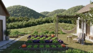느리게 흘러가는 시간 속에서 텃밭의 푸른 채소를 보며 진정한 휴식과 마음의 평온함을 발견할 수 있습니다.